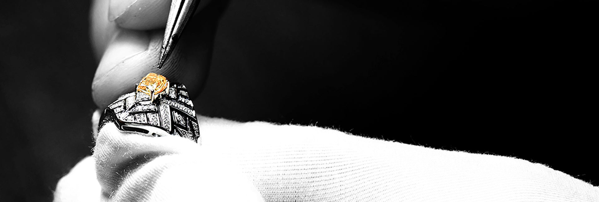 black (cold enamel), white (white gold), yellow (the king of gems, diamond), and vibrant colored gemstones,