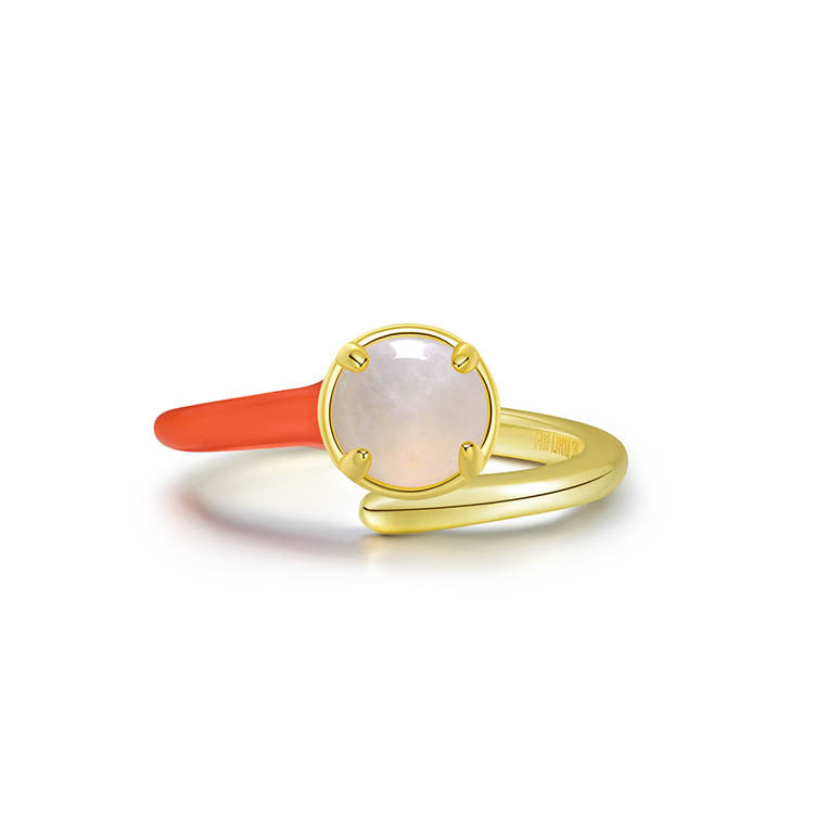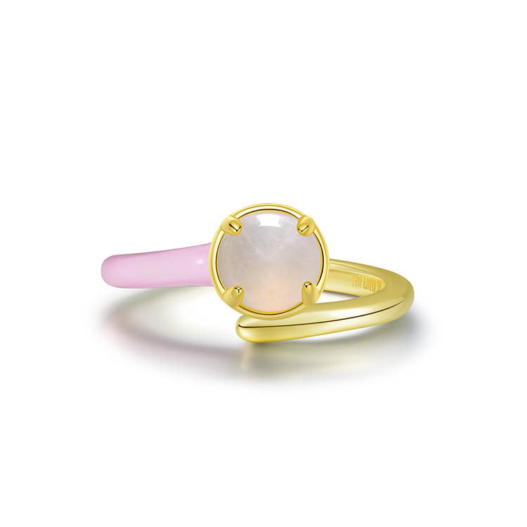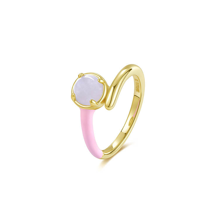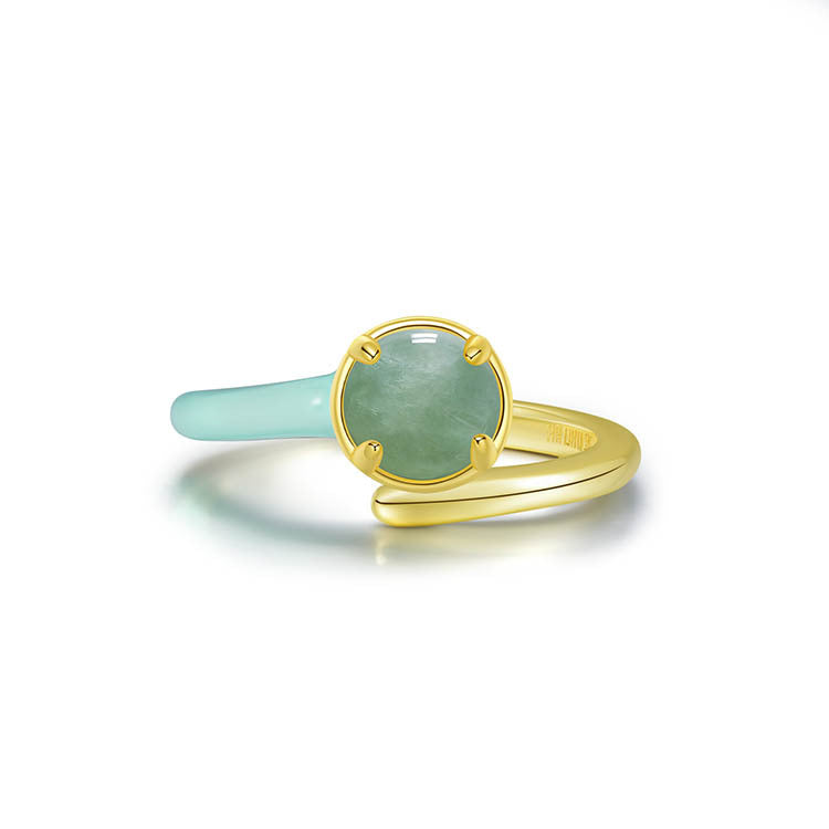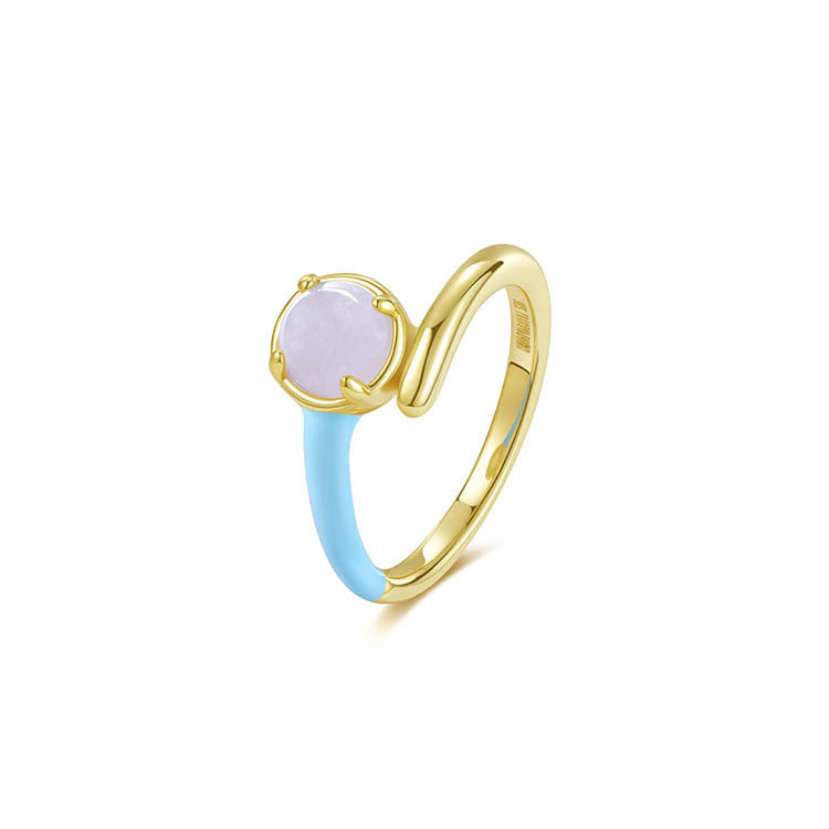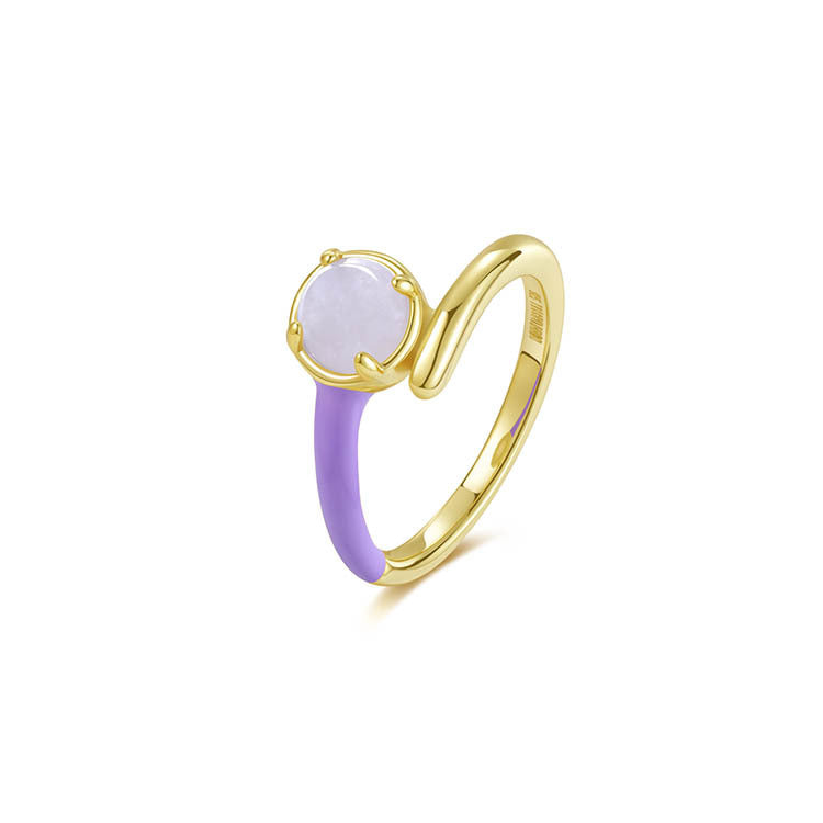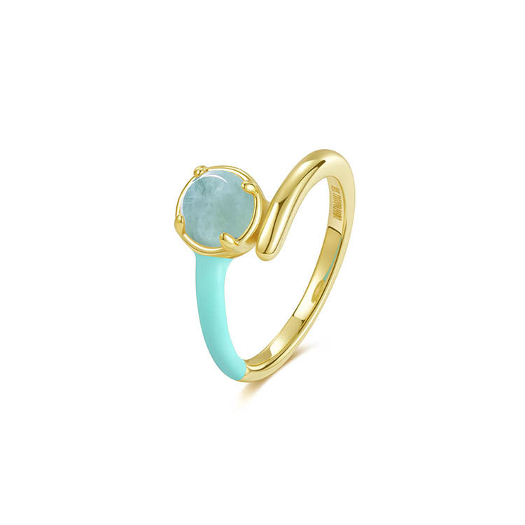 天然圓形翡翠單邊琺瑯交錯戒指