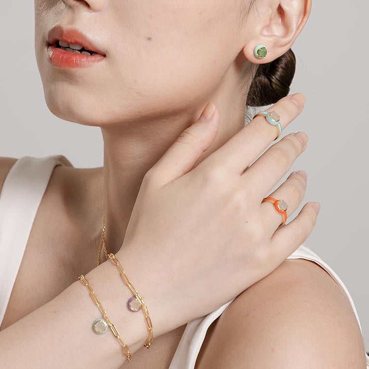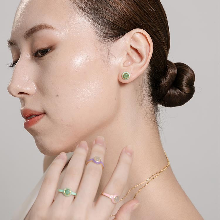 天然圓形翡翠琺瑯戒指