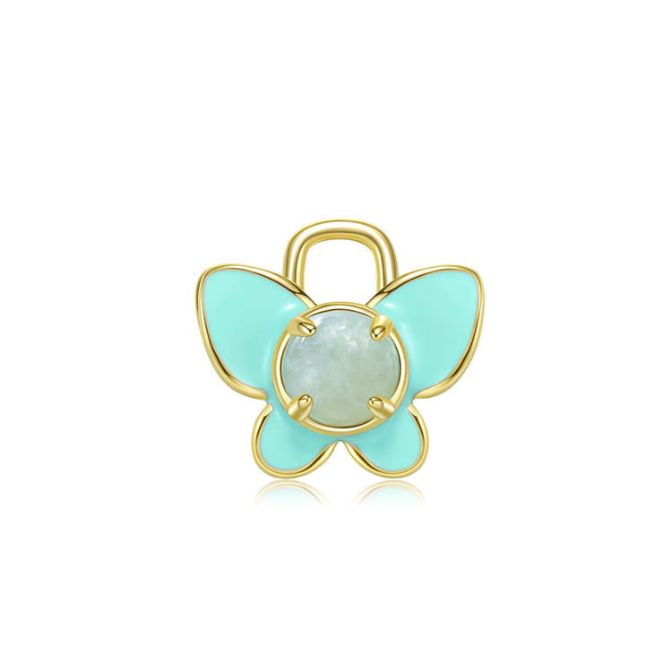 天然圓形翡翠琺瑯蝴蝶吊墜
