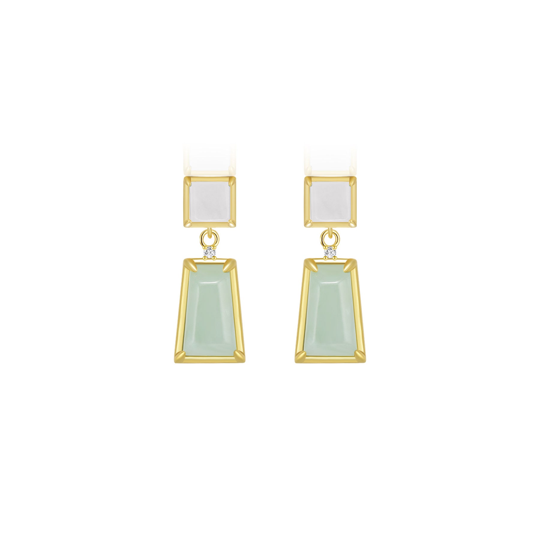天然翡翠小方梯形耳釘