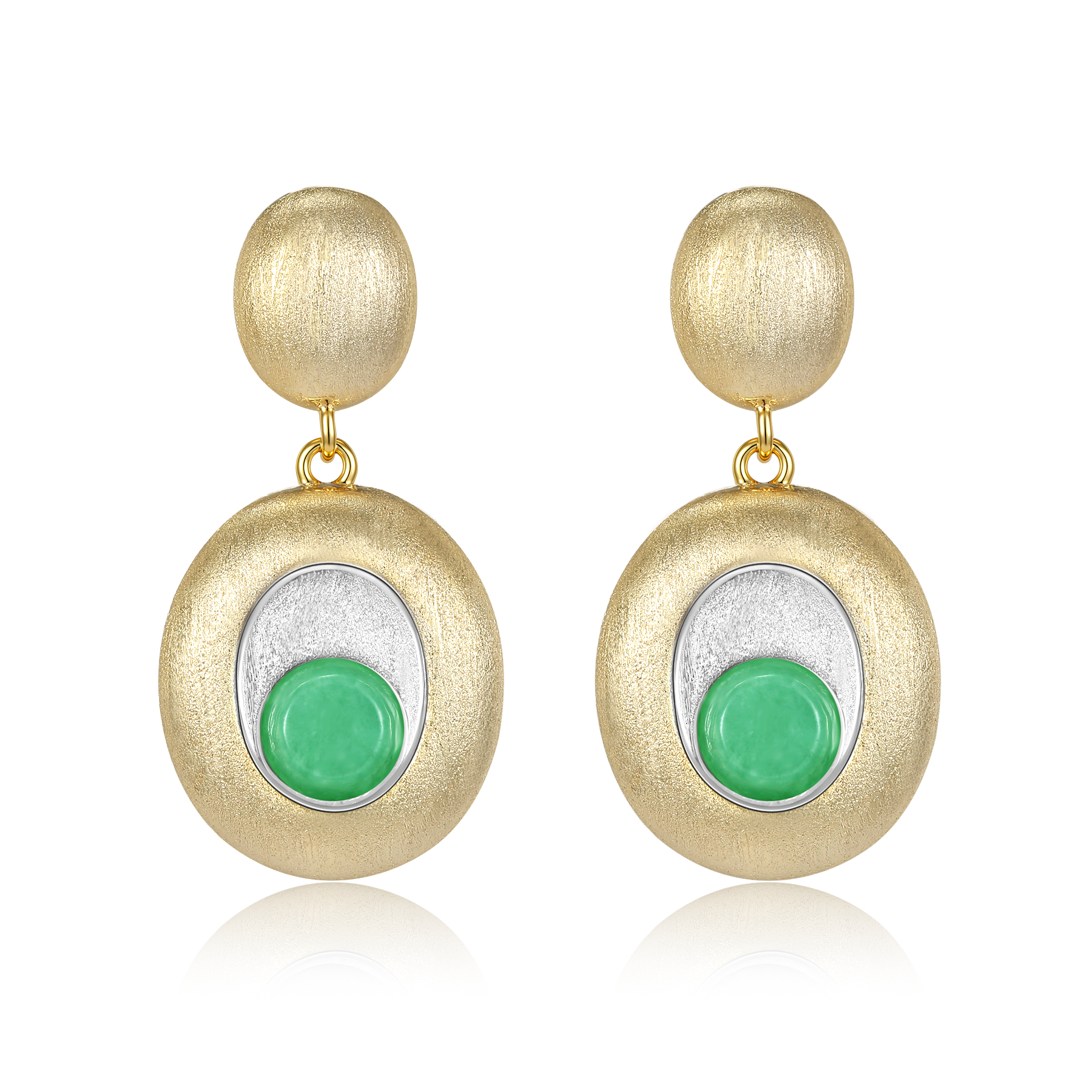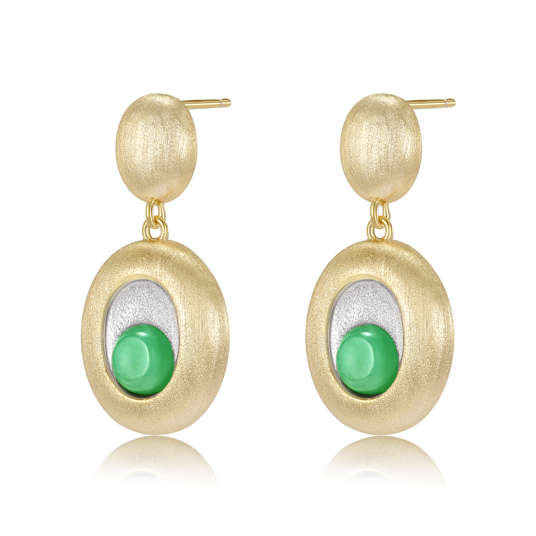 橢圓雙色拉絲翡翠小圓餅耳釘