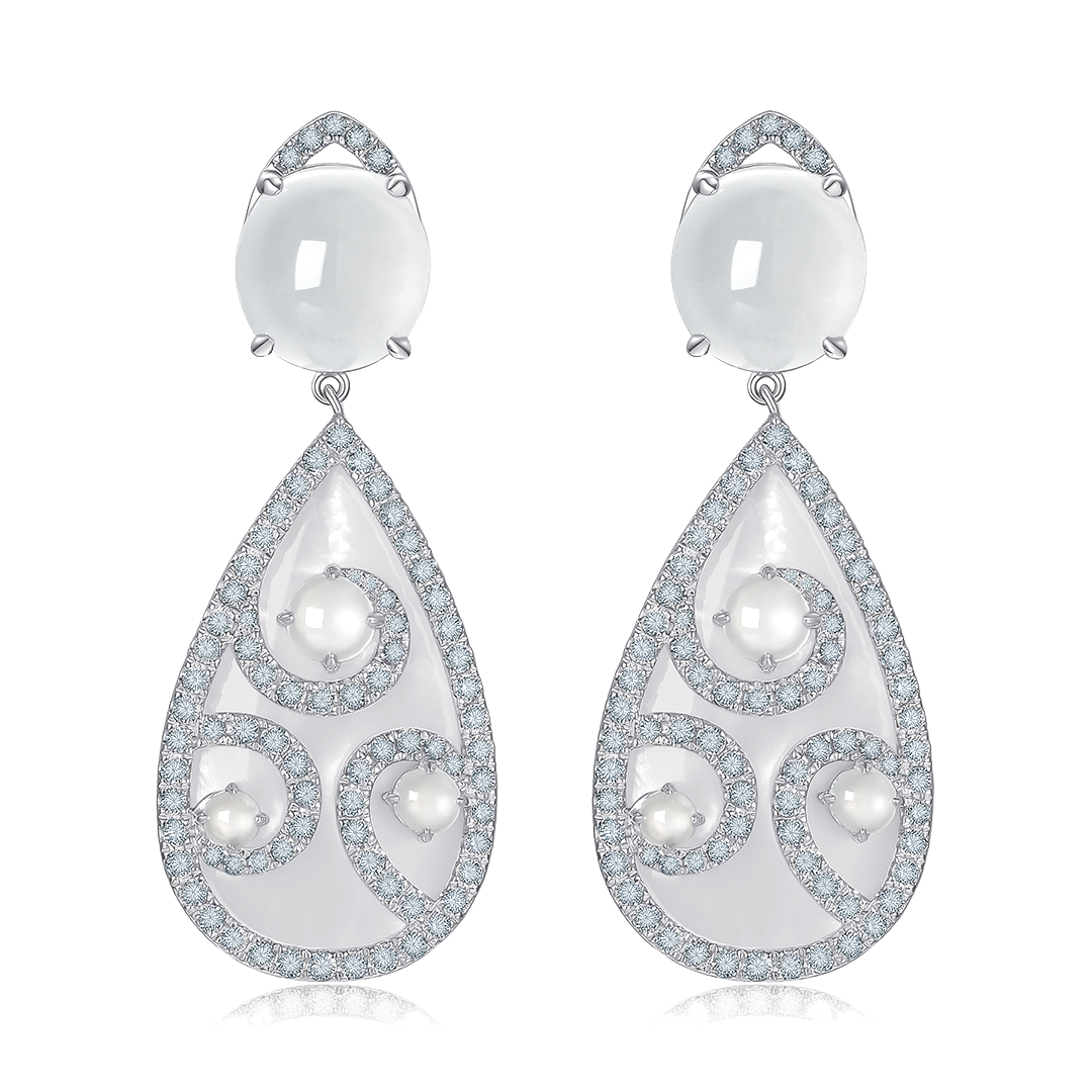 白翡母貝螺旋水滴垂墜耳釘