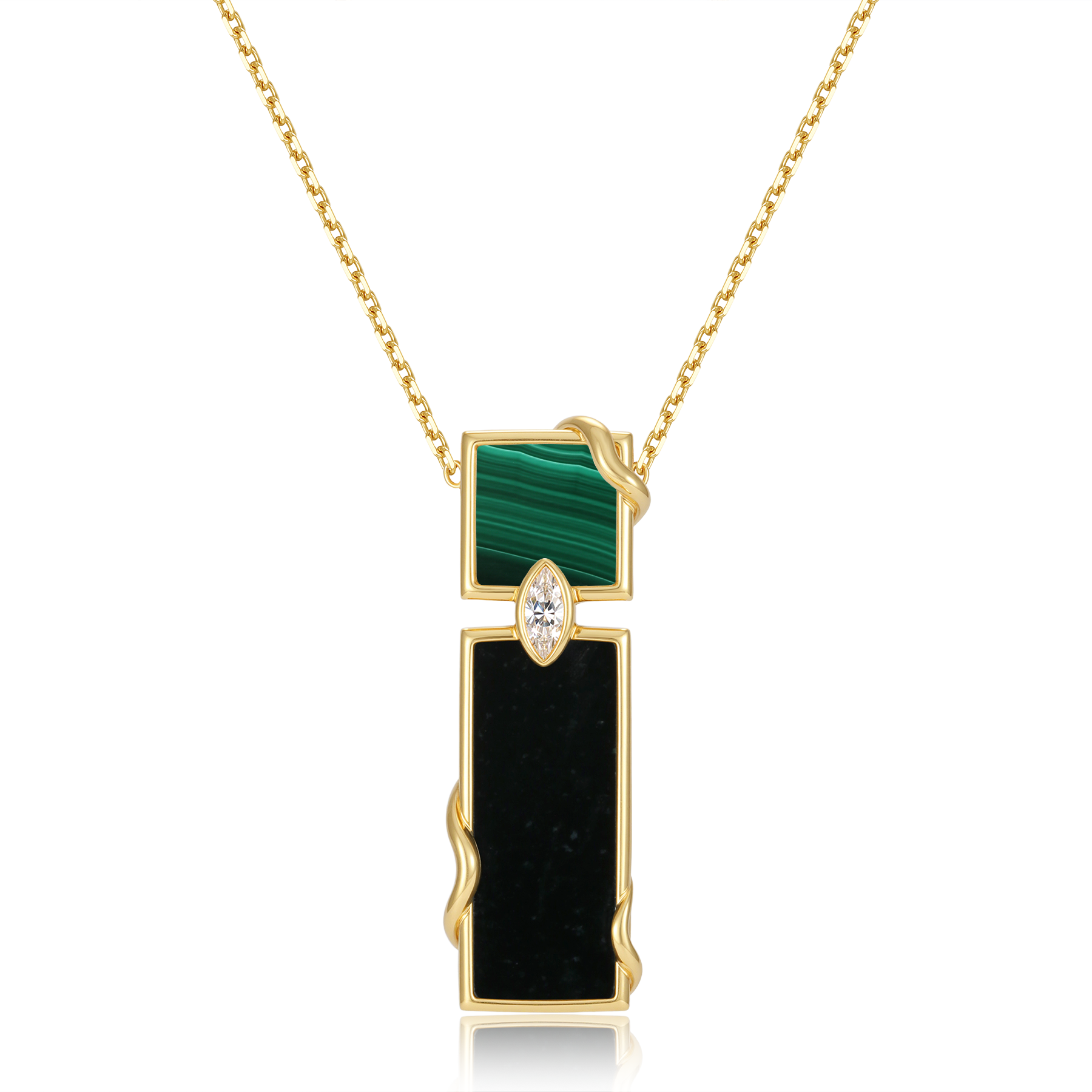 限量款蛇形天然墨翡正方長方未來鑽石項鍊(10分) - 孔雀石