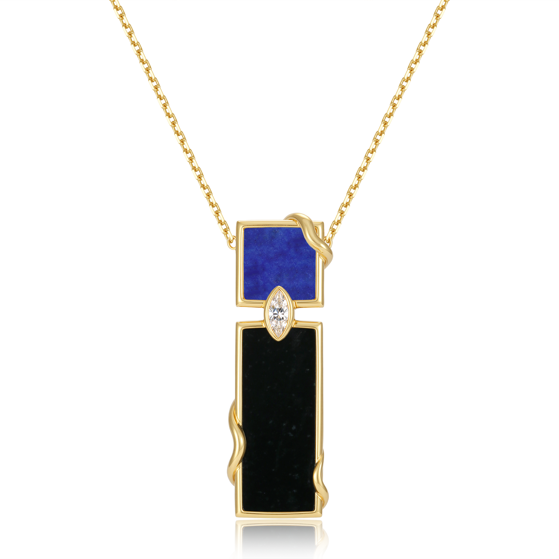 限量款蛇形天然墨翡正方長方未來鑽石項鍊(10分) - 青金石