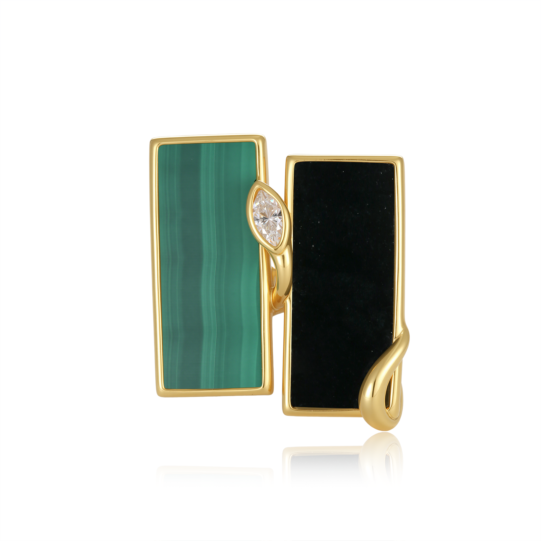 限量款蛇形天然墨翡雙長方未來鑽戒指(10分)-孔雀石