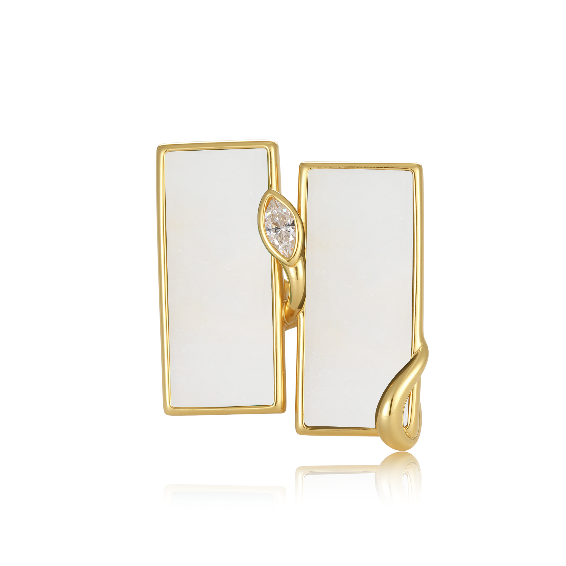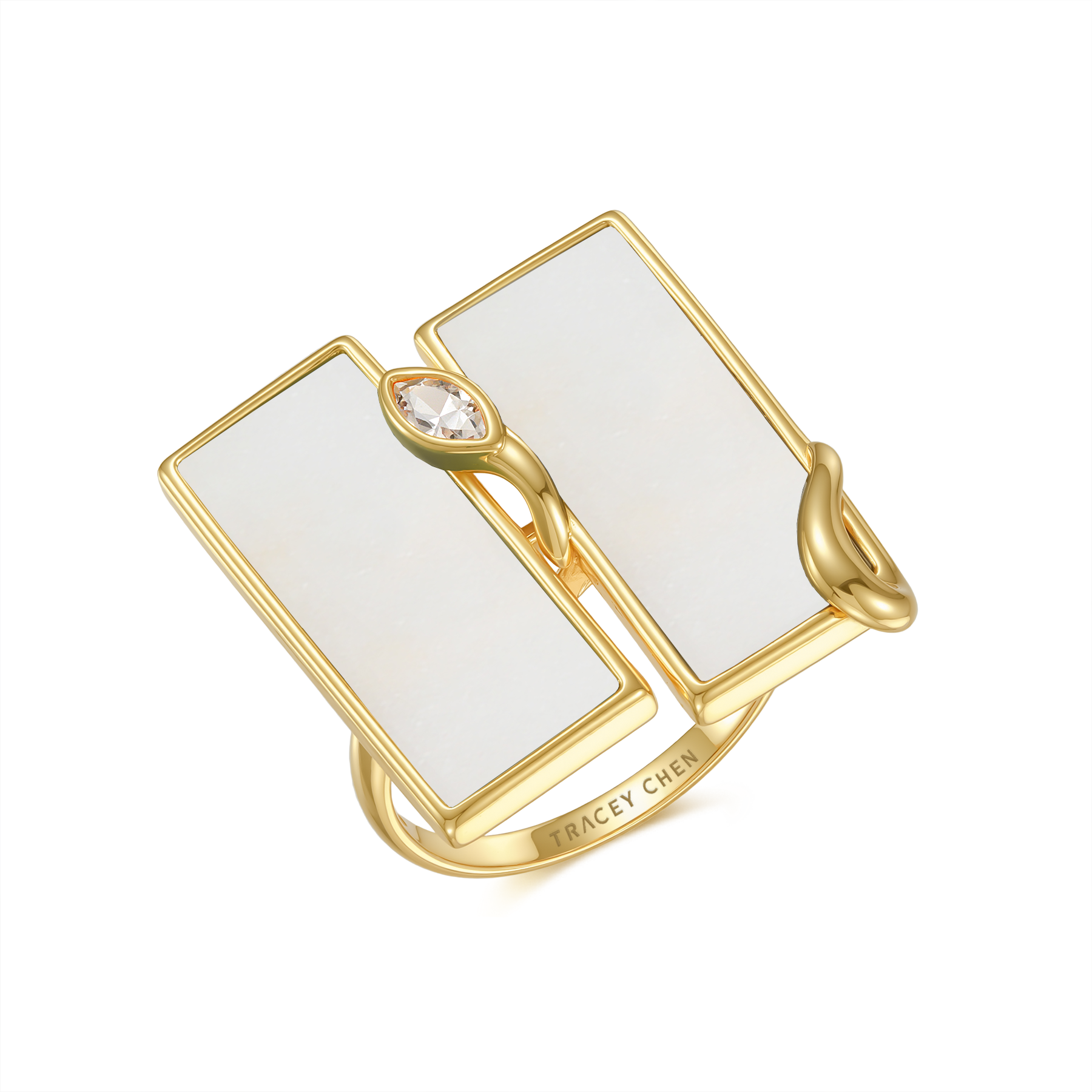 限量款蛇形天然白翡雙長方未來鑽戒指(10分)