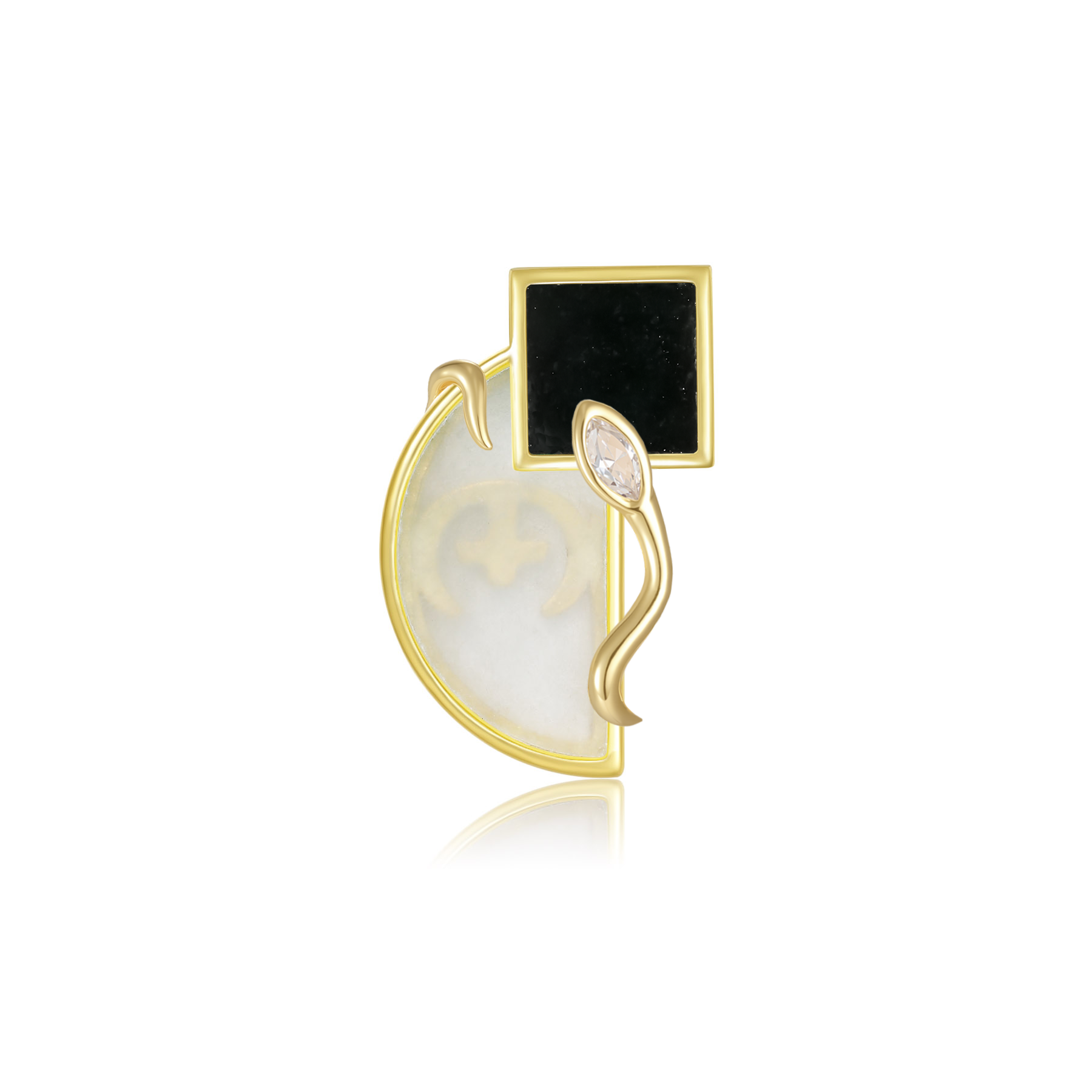 限量款蛇形天然翡翠正方半圓未來鑽耳釘(10分)