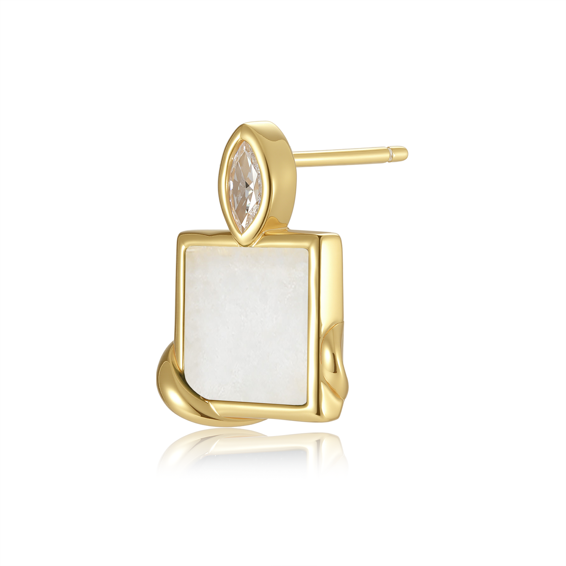 限量款蛇形小正方未來鑽耳釘(10分/單邊)-白翡