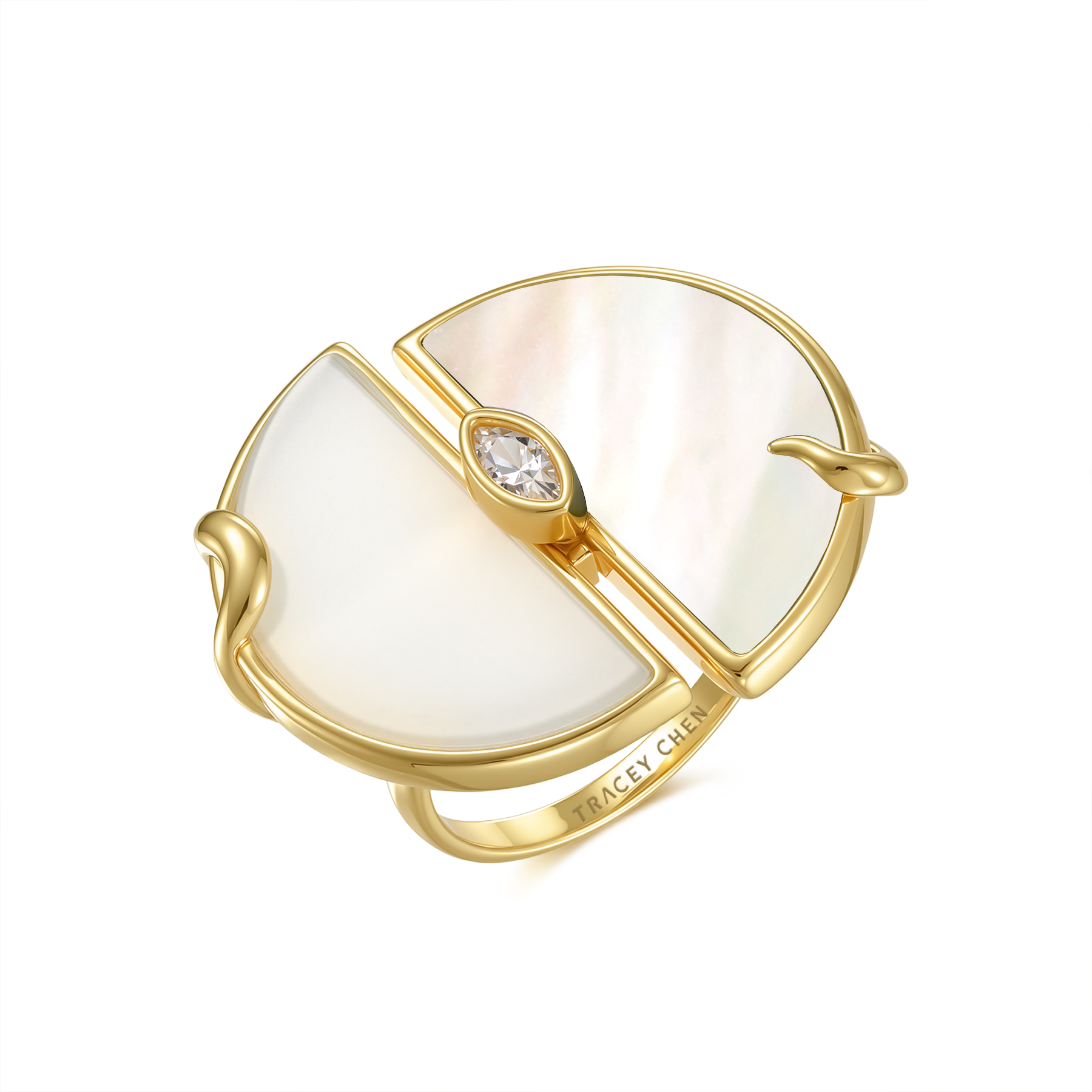 限量款蛇形雙半圓天然墨翡母貝未來鑽戒指(10分)
