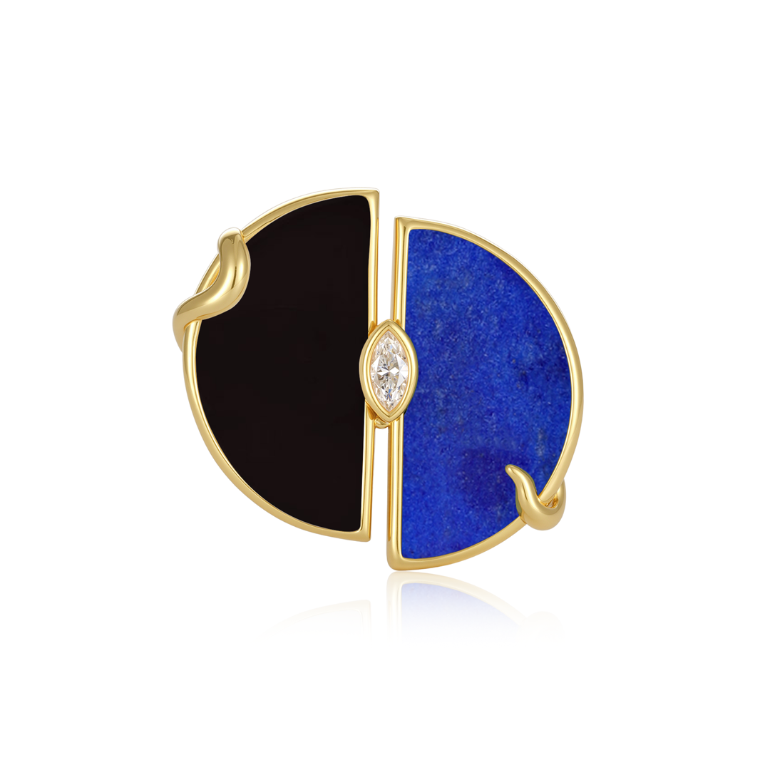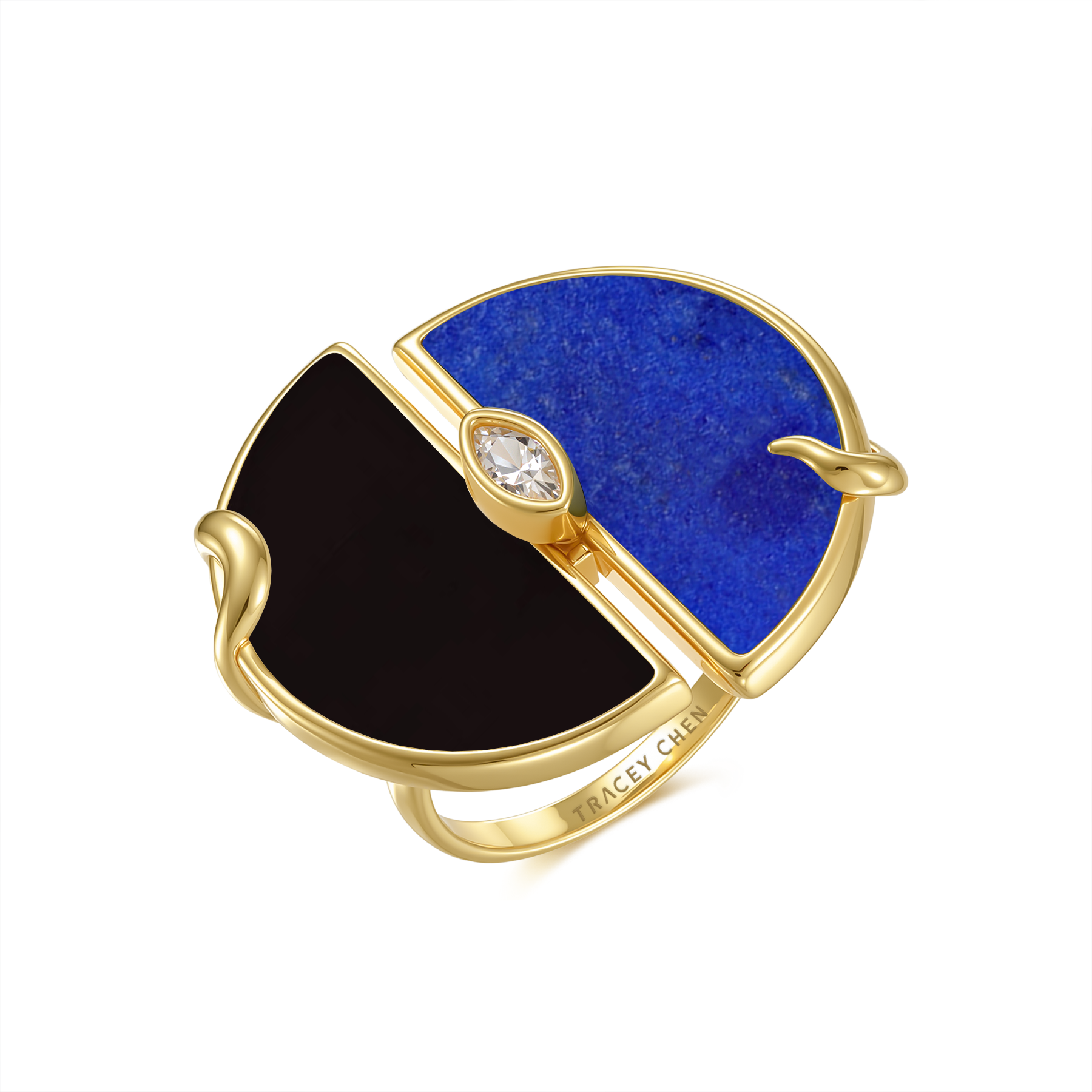 限量款蛇形雙半圓天然墨翡青金石未來鑽戒指(10分)