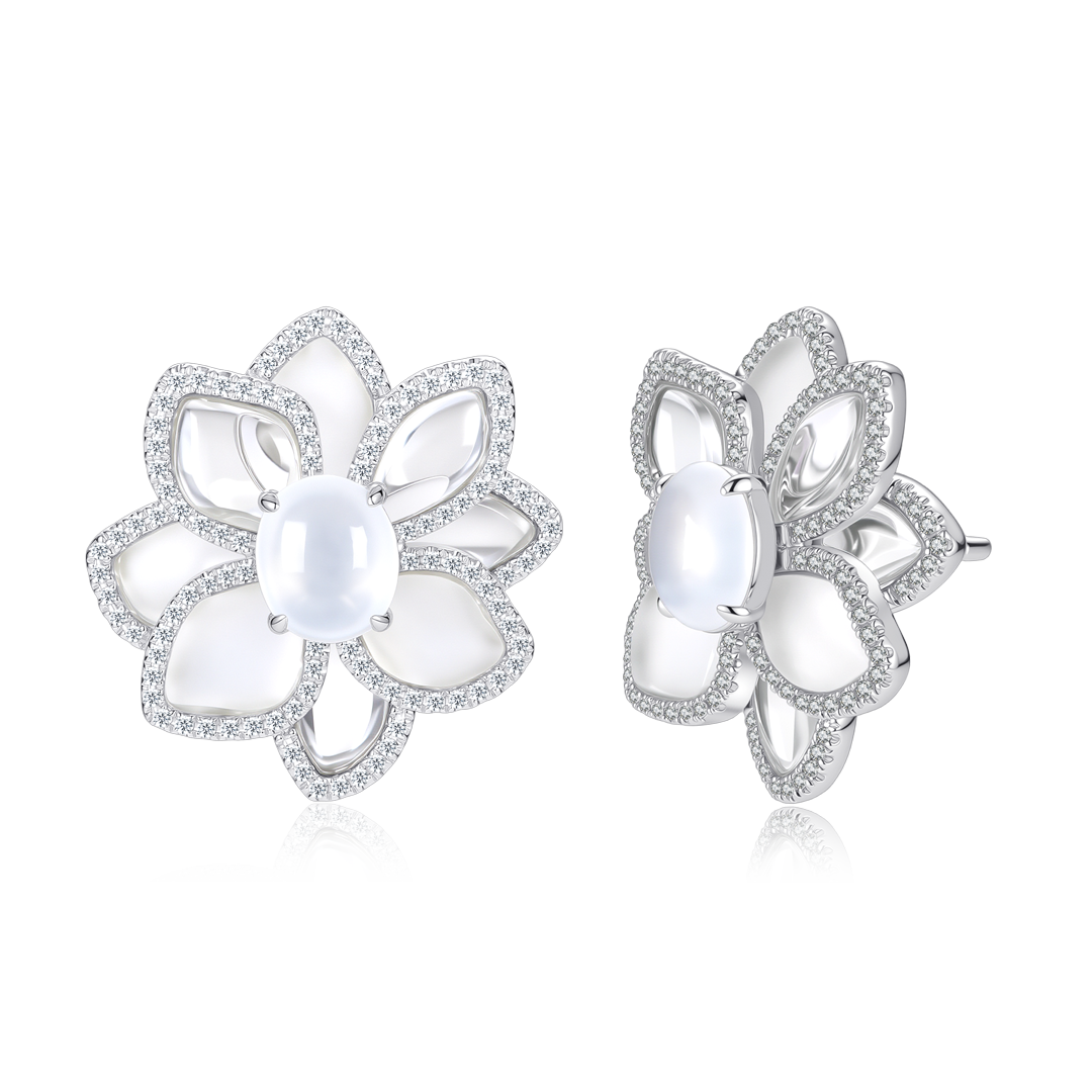 白翡磨砂水晶雙層花瓣耳釘