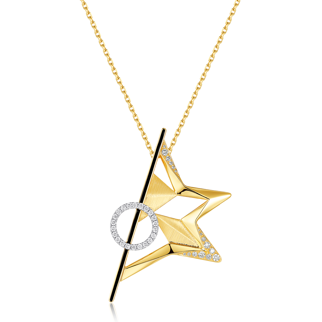 大星光線條圓圈兩邊鑲鑽項鍊